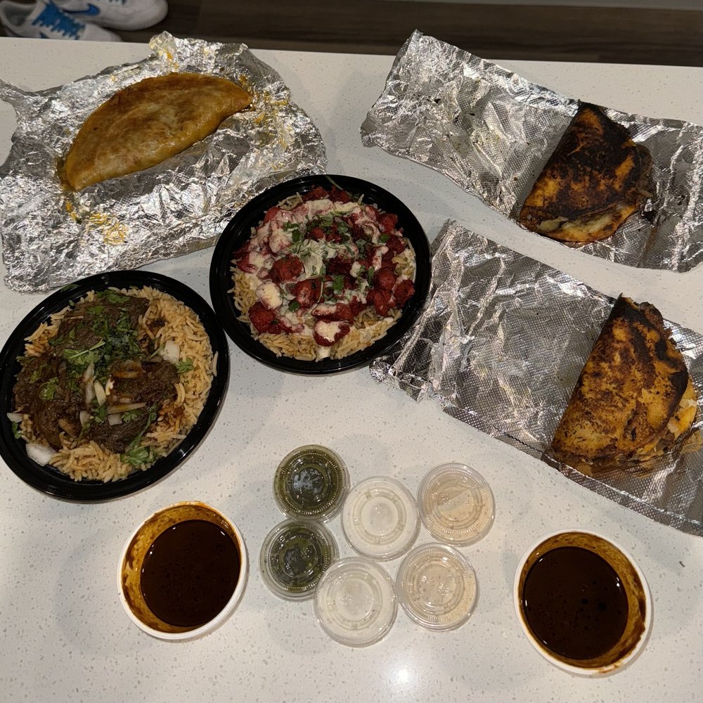 For a heartier option, try the Chipotle Keema Rice Bowl, blending ground beef spices with a Mexican twist over fluffy Spanish rice. Accompanying sauces such as homemade Tandoori ranch and Mint Verde enhance every bite, creating a symphony of flavors.